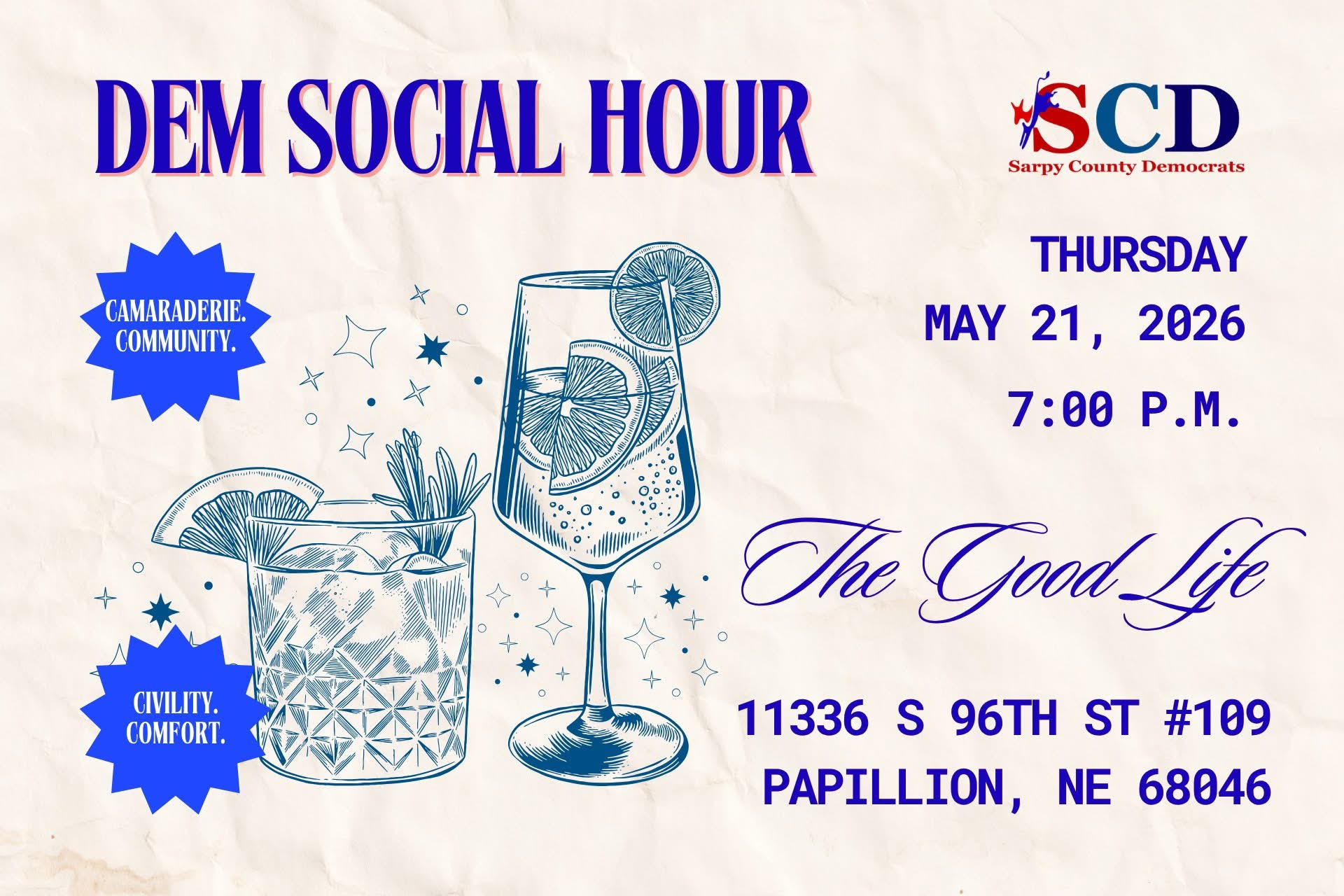 Sarpy County Democrats hold monthly meetings that are open to all Democrats, including those who live outside Sarpy County. Sarpy candidates are frequent attendees and are eager to meet future constituents.